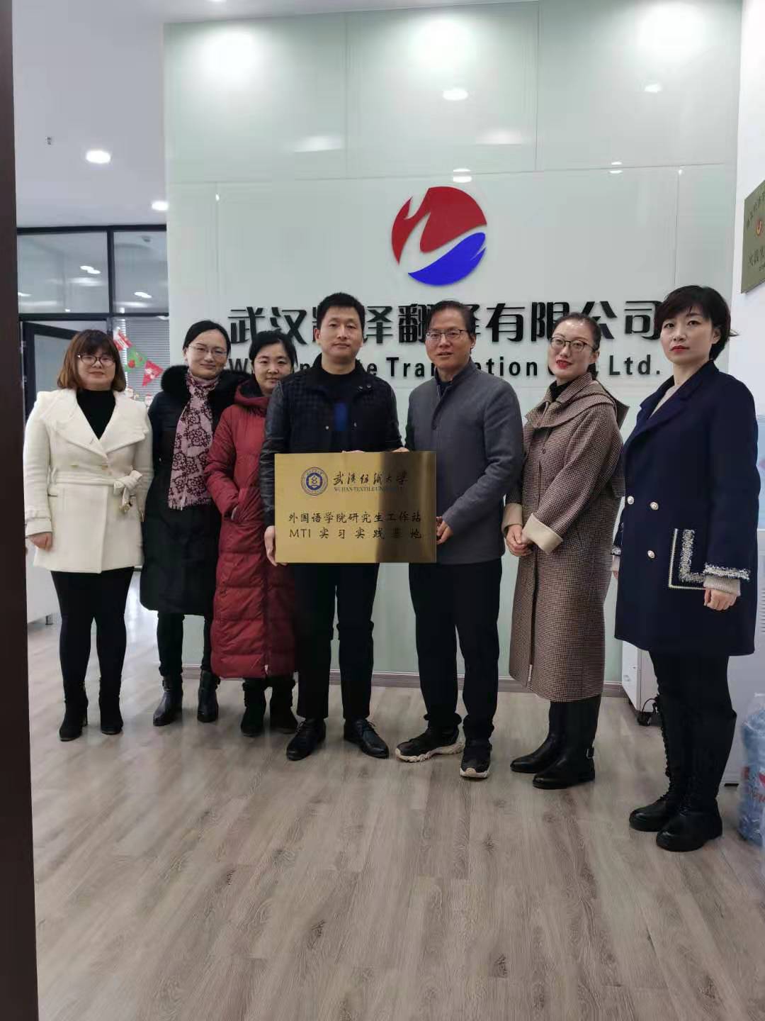临近寒假之际,我院柯群胜副院长带领MTI教育中心副主任华敏、英语系副主任唐娴和吴卉副教授、商务英语彭姿等一行前往武汉精译翻译有限公司,开展企业回访及毕业生跟踪调查相关工作,就学生实习实践基地进一步合作事宜进行洽谈,并举行了实习实践基地挂牌仪式。