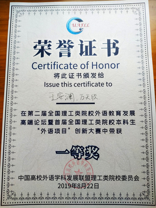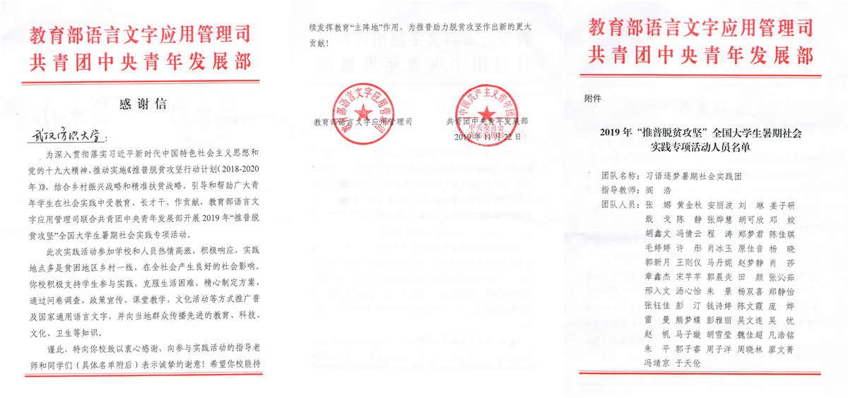 突出思政育人,紧抓学风建设,指导专业分流,全员全过程全方位服务学院人才培养。学院首次招录翻译专业硕士研究生9人,2020年翻硕报考人数比上年增加100%。学院英语专业2019届本科毕业生就业率以98.51%位居全校第一,考研(出国)录取率29.85%位居全校前列,1名学生录用为湖北省选调生,1名学生入选湖北省“青年马克思主义者培养工程”培训班学员,连续六年有学生获评校“青春力量 感动纺大”榜样人物,英语11702班荣获校“十佳班级(团支部)”,37人获得省级以上学科竞赛奖项;学院首次获批教育部“推普脱贫攻坚”大学生暑期社会实践项目1项,武汉市团委“新青年下乡”暑期社会实践项目2项,辅导员阎浩首次荣获湖北省辅导员素质能力大赛三等奖。