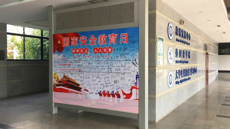 4月15日上午,学院在阳光校区崇文楼一楼大厅设立“国家安全 人人有责”、“我关心、我知晓、我掌握、我参与”国家安全主题签名墙,学院全体师生纷纷驻足签名。学院商务英语专业11801班团支部书记、班长陆试宏表示,通过学院组织开展的系列国家安全主题教育活动,他不仅学习掌握许多国家安全相关的知识,同时还增强了自身的国家安全意识,强化了青年大学生维护国家安全的使命担当。