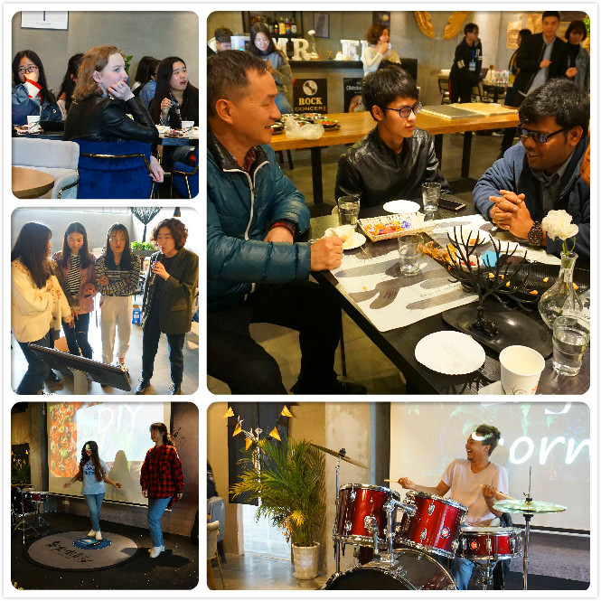 的老师们分别加入到不同的英语话题小组中参加交流讨论,老师们与学生们、中国学生们与外国留学生们都相谈甚欢,不仅增进了相互了解,也建立了许多新的友谊。“你好!新朋友”、“你画我猜”、“美食DIY”、“个人才艺秀”等环节穿插其间,为本次活动增添了许多快乐的元素,大家共同度过了一段美好的时光。