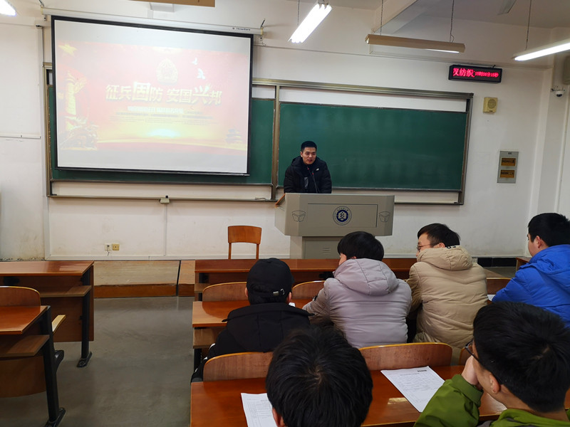 阎浩老师首先向与会男生介绍了大学生应征入伍的报名条件及各项优惠政策,同时结合自己的亲身经历,分享了个人的军旅情怀。随后,于天伦同学同与会男生分享了自己参军入伍的经历,并以自己以及身边的战友为例,将应征入伍对个人成长以及对家庭的帮助讲解得更加透彻,激发起了同学们投身军旅、报效祖国的热情。