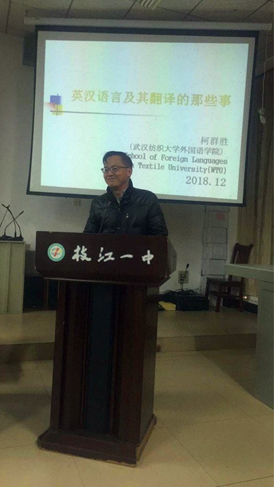 会后,副院长柯群胜教授为枝江一中的同学们送去了一场题为“英汉语言及其翻译的那些事”的学术报告,同时,枝江一中的师生们一同观看了成人文学