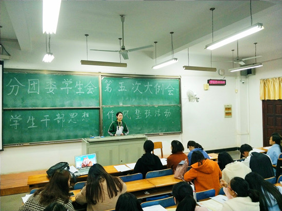 为贯彻落实校团委《关于开展加强学生干部思想纪律作风整顿活动的通知》要求,11月19日晚,成人文学