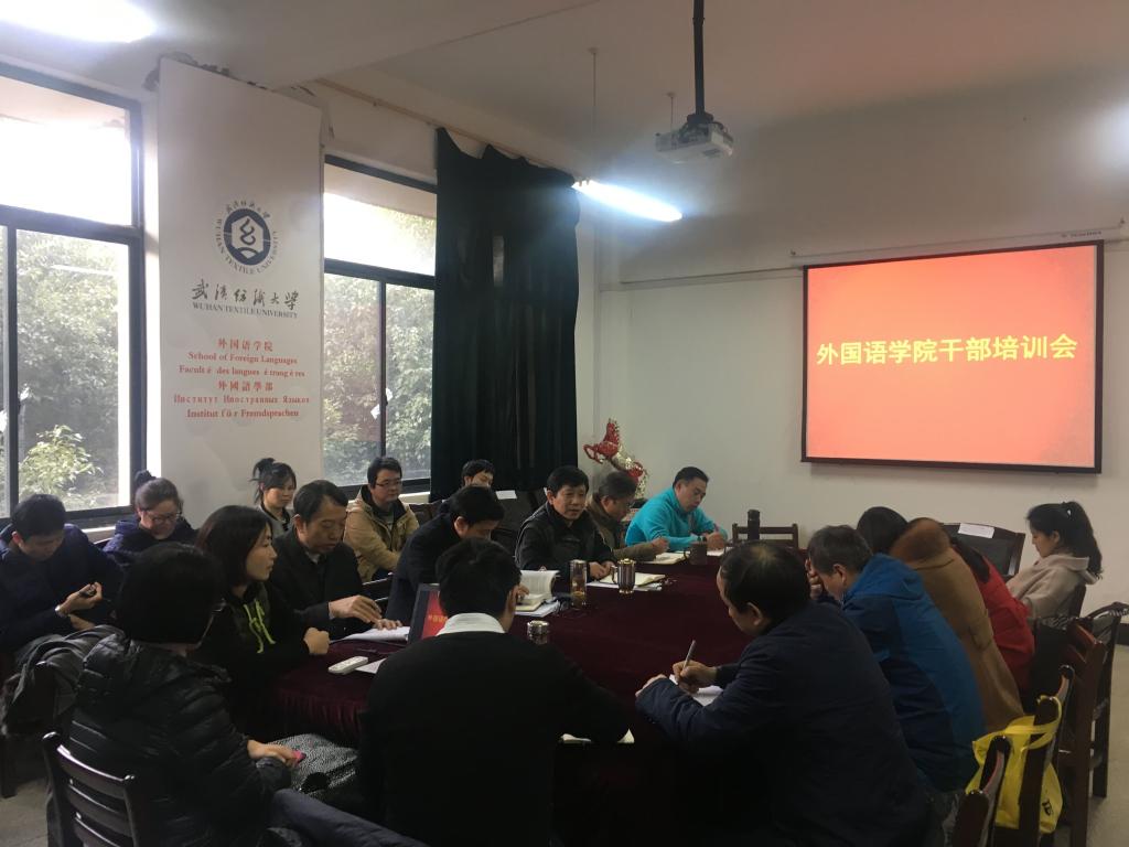 召开全体干部大会,学院班子成员,党委委员、教工支部书记、支委、教研室主任、副主任、工会主席和办公室主任参加会议。会议由学院党委常务副书记胡中原主持。