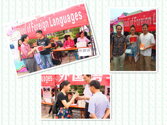 首次推出“全英文迎新”,此项工作得到了学院领导、老师们的广泛认可,院长何畏教授、分党委书记陈利民教授领衔2015级新生导师以及学院英语志愿服务基地的优秀英语志愿者们,迎新小分队统一着装,在迎新现场全程用英文和新生交流,别具一格,充分凸显学院专业特色,让学生对专业学习充满期待,让新生家长对学院的教学水平充满信心。此外,全体导师为助力本次“全英文迎新”,捐资购入百余本原装进口的英文经典名著,按照每个寝室发放不同版本的五本原著,作为“新生大礼包”赠予2015级新生,希望“以书会友”,借此鼓励2015级新生多读书,不断提升英语水平。