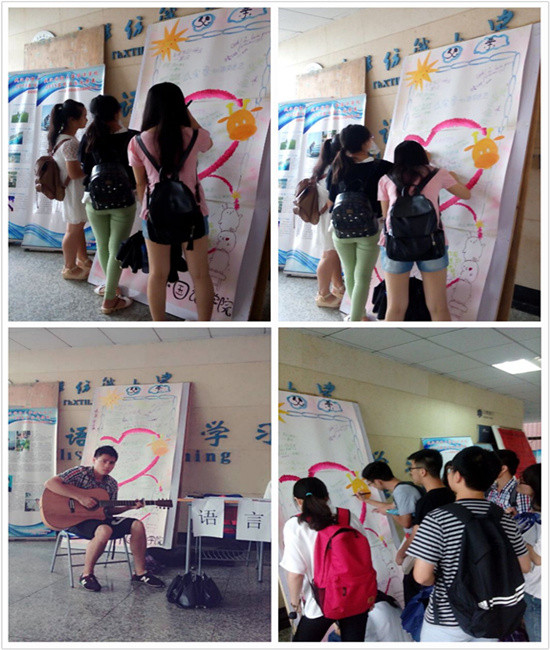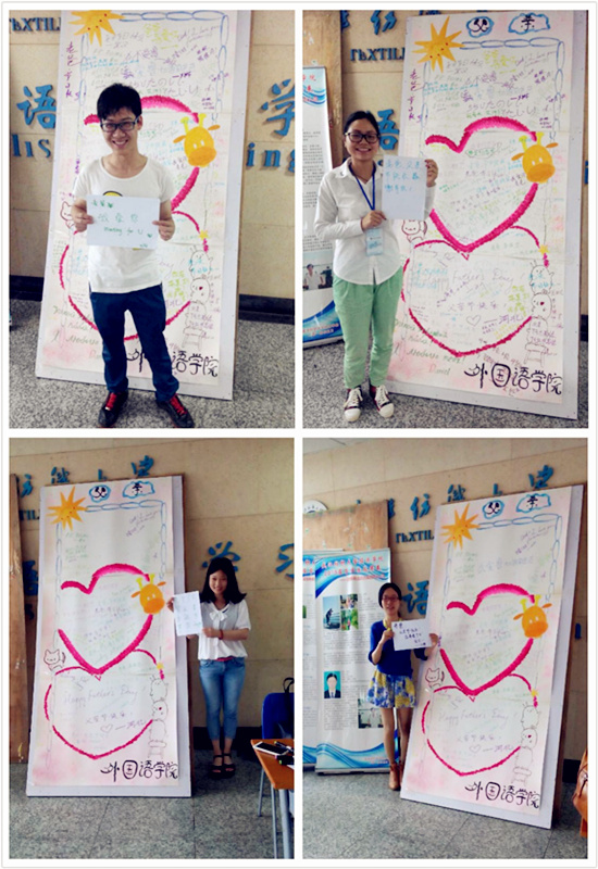 在7教大厅举办“语言不同,父爱相同”父亲节感恩活动,迎接一年一度父亲节的到来。此次活动,吸引了众多老师和同学们的参与,他们或用家乡的方言,或用不同国家的语言,向父亲show出自己深深的爱和诚挚的祝福。