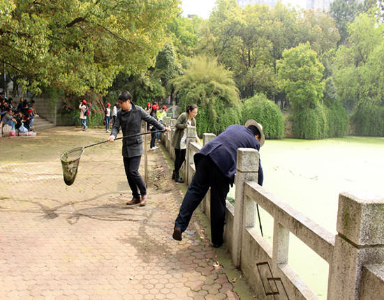 记外语学院南湖校区捞浮萍志愿服务活动