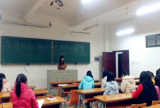 希望和挑战,信心和使命,这是大家共同的话题。连日来,随着“两会”的召开,有关“两会”的新闻也成了人们谈论的热点话题,3月8日晚,外语学院的各年级学生在07-T302教室开展了一次关于学习“两会”的主题班会,辅导员陈新川和卫周瑶也出席了此次活动。