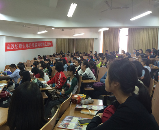 的管易娟和汪亚龙两位同学与一百多名大一大二的学生交流了自己在美国实习中的经历与收获。