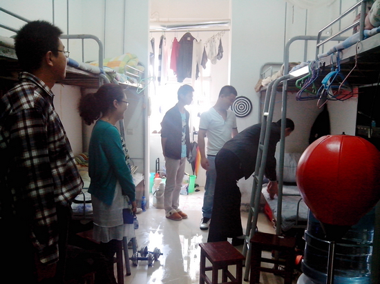 分党委书记陈利民,分党委副书记张鹏,学院辅导员陈新川、明珠等老师走访阳光校区2B女生宿舍、13A男生宿舍。
