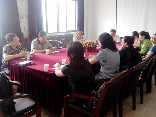 会议室畅谈学科建设、办学发展。外语学院领导班子会见了兄弟高校来宾。何畏院长主持了座谈会。
