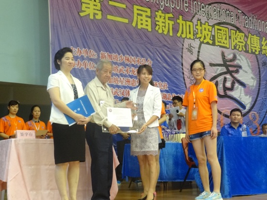 2013第二届新加坡国际传统武术大赛于7月20、21日在新加坡裕廊东国家体育馆举行,新加坡国会议员连荣华先生、新加坡少林国术总会主席、大赛组委会主席郑荣源先生出席大赛,中国国家体育总局武术研究院秘书长、中国武术协会段位制办公室主任康戈武任大赛中国武术段位制主考官,中国武术九段、国际级武术裁判张山担任大赛总裁判长。大赛吸引了来自十几个国家的武术团体踊跃参与,来自中国成人文学