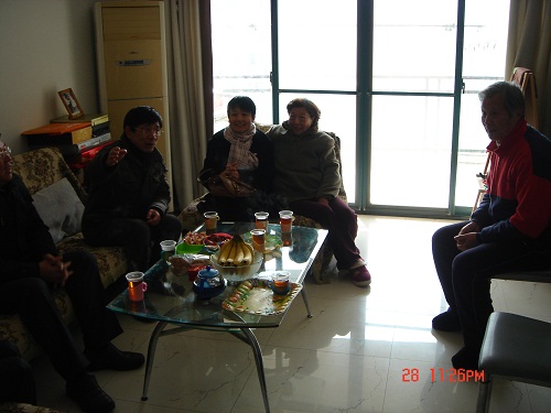 随后,慰问团又前往韩正顺、谭燕保2名教授以及离退休专家教授隋思忠老师家中探访。在韩教授家中,大家看到茶几上堆满了莫言的《丰乳肥臀》,《生死疲劳》,马尔克斯的One Hundred Years of Solitude等书籍,中文的,英文的,法文的,真正一个语言教授。离退休教授隋思忠是外贸英语领域的专家,老教授和夫人热忱接待了慰问团一行,衷心感谢学校和学院领导的关心。隋教授虽然退休,但坚持每天在网络上关注学校和学院情况,对学院和学校的发展了如指掌,他十分关心青年教师,关注着学校的未来,对学校的热爱之情溢于言表。