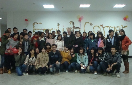 在接下来的free talk环节,几位外国友人的加入使活动达到了新的高潮。外教Megan、 Dave和 Rebecca相继向同学们介绍了感恩节的由来以及如何度过感恩节等等。外教Dave说:“Thanksgiving Day is an important day of family union. We usually eat turkey and pumpkin pies on that day. ”活动最后,同学们也纷纷在“感恩墙”上写下了自己的寄语以表自己的感恩之情。