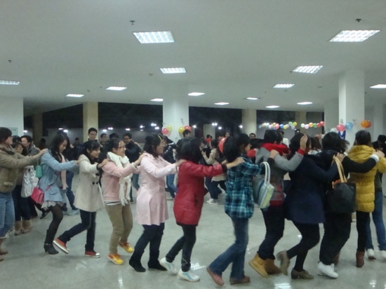 12级新生以一曲《江南style》劲爆热舞high翻全场。领舞者谷梦春以火辣的舞姿顿时点燃了全场同学的热情,燃起了全场的热烈氛围。外教Megan和Rebecca以及在场的诸多同学都被他的激情所感染,纷纷参与其中,与表演者共舞。外语协会准备的手语舞蹈《感恩的心》,更让同学们感受到了一股浓浓的感恩之情。