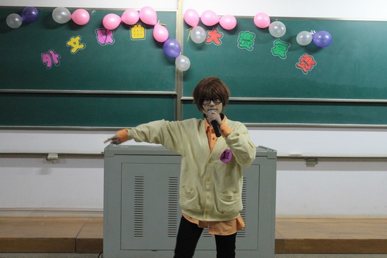 11月22日晚,感恩节之际,第六届外文歌曲大赛十强晋级赛在06-212室举行。来自传媒学院、数计学院、成人文学
