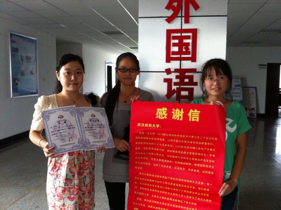 对此项大赛志愿者选拔活动的鼎立支持予以感谢,并对外语学院魏佩柔、李灵智、胡健等三名学生志愿者的“高水平、全方位”的服务给予了充分的肯定和表扬。