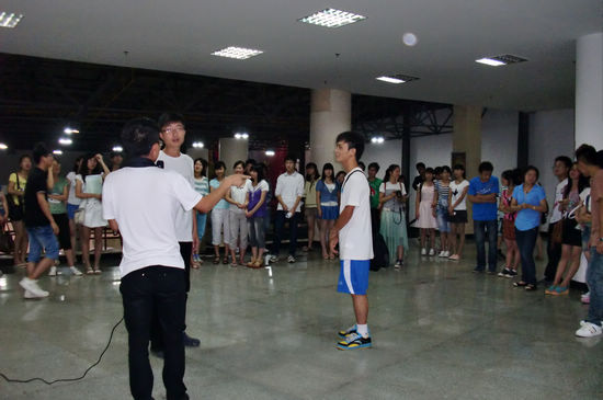 外语协会会长唐栋一口流利的英语受到在场同学们的青睐。各组成员都聚集到唐栋同学的周围,听他讲述他的社会经验和英语学院心得。成人文学