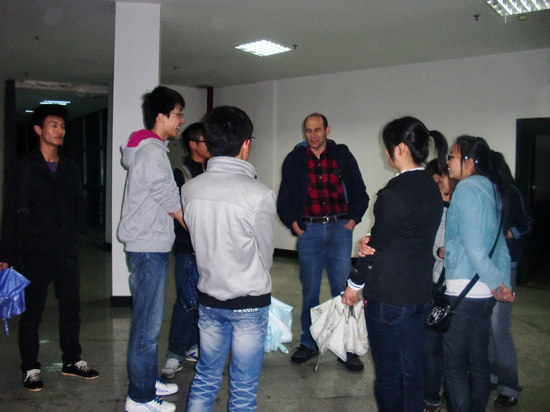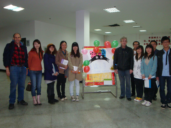 此次“一院一师一星——英语角走进学院”活动的第一站——管理学院英语角现场十分热烈。同学们自由分组,进行英语口语交流;成人文学