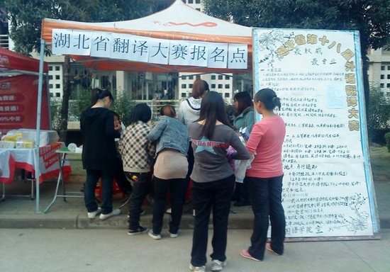 湖北省翻译大赛由湖北省翻译工作协会和武汉翻译工作者协会联合举办,参赛人员涉及各机关、科研、企事业单位的外语翻译人员和爱好者以及各高等院校本、专科大学生、硕士生和博士生,是湖北省最权威、最专业、最具品牌价值的翻译赛事,在全国翻译界也享有盛誉。该赛事已持续27年,今年是第18届。
