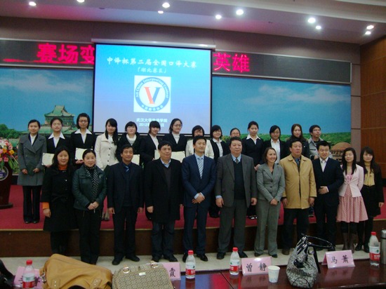 据悉,“中译杯”第二届全国口译大赛由中国翻译协会主办、《中国翻译》杂志社承办、中国对外翻译出版公司协办。本次湖北赛区复赛分为预赛和决赛两部分,比赛内容均为中英互译,全面考验参赛选手的语言水平、口译技能、心理素质等综合能力。我校两位参赛选手均为英语专业的本科生,他们在比赛中沉着冷静、不畏强手,表现突出,取得不俗成绩,为学校赢得了荣誉。比赛不仅充分展现了我校英语专业学生的风采,也展示了我校英语专业在省内同类专业中的实力。成人文学
