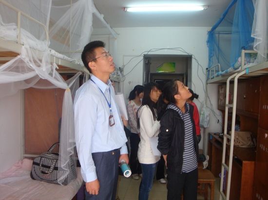 分党委副书记卫冬妹叮嘱带队老师和同学要认真检查,仔细叮嘱,杜绝隐患,确保学生宿舍安全。