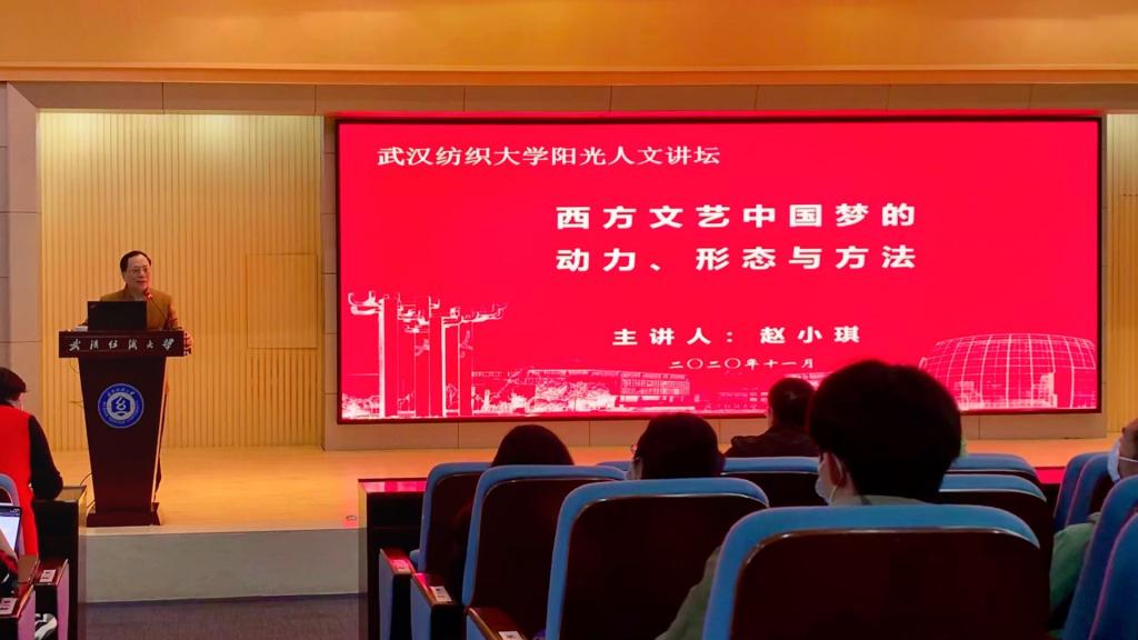 第217期阳光人文讲坛于阳光校区国际学术会议报告厅隆重举行。讲座邀请到武汉大学文学院博士生导师、教授赵小琪老师亲临报告厅,以《西方文艺中的中国梦的动力、类型与方式》为题开讲,讲座由成人文学