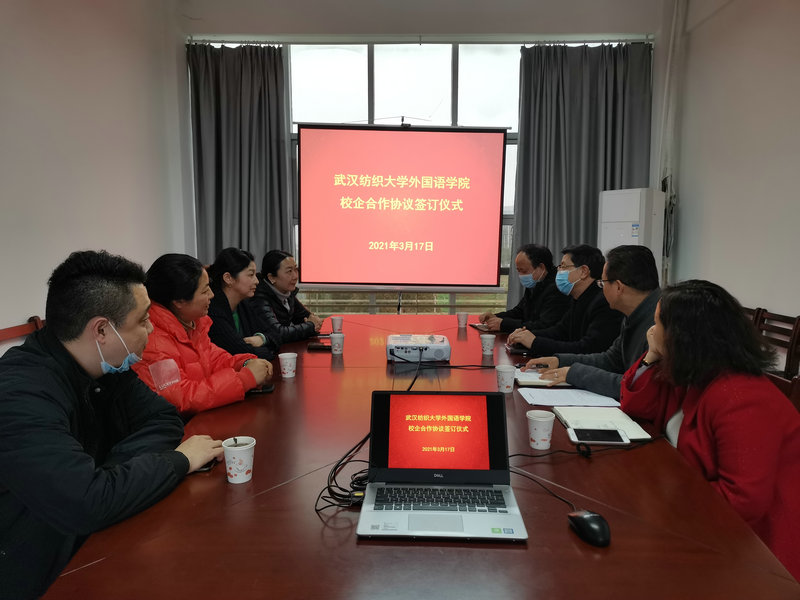 与襄阳市博诚家用纺织品有限公司、客奇创拓(武汉)信息技术有限公司、湖北纬思企业管理咨询有限责任公司三家企业在崇文楼313会议室举行校企合作签订仪式。学院书记胡中原,副院长柯群胜、罗绮伦,副书记王芳及三家企业共4名代表出席仪式。