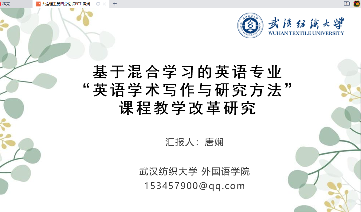 英语系副主任唐娴老师在本次会议的第四分论坛作了有关“英语学术写作与研究方法”课程教学改革的发言。唐老师在发言中提出了这门课程教学课时有限、课程学习难度大和作业批阅难度大的三个问题,并以解决这三个问题为出发点提出了实行个性化学习、基于能力的学习和泛在学习的混合学习模式以及基于iWrite的作业布置与批阅方式,以智慧化教学的方式解决课程教学中的问题。