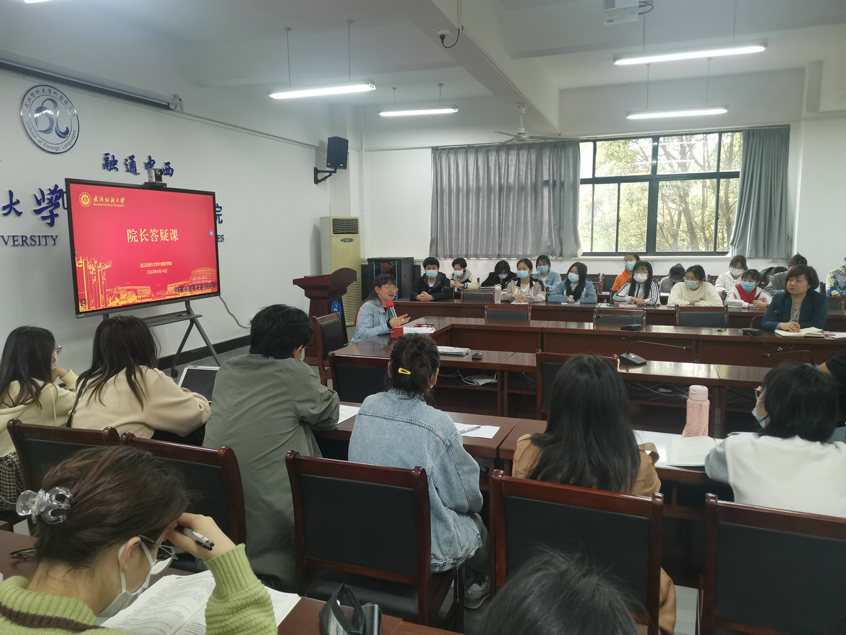 在阳光校区崇文楼303会议室开展《院长答疑课》,学院院长谭燕保主讲,来自学院各个年级共100多名学生通过线上线下方式同步参与。活动由学院党委副书记王芳主持。