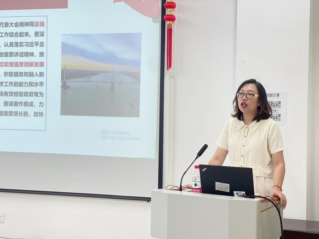 会上,刘艳介绍了湖北省第十二次党代会的召开情况,并从过去五年的工作、准确把握新发展阶段湖北面临的新形势新任务、完整准确全面贯彻新发展理念、加快建设全国构建新发展格局先行区、坚持和加强党的全面领导,切实提高建设全国构建新发展格局先行区的能力和水平等五个方面对湖北省第十二次党代会报告的主要内容进行了全面深入解读。刘艳指出,大会报告明确了今后五年湖北工作的总体要求、奋斗目标、重点任务和具体举措,是指导今后一个时期湖北发展的行动纲领。刘教授强调,作为湖北高校,成人文学 在科研创新上坚持“抓前沿、上水平、入主流、显特色”的策略不放松,通过此次党代会的召开,我们要找准学校和学院教育发展的目标和定位,充分发挥高校高水平人才培养主力军、区域创新体系建设排头兵、增强发展新动能策源地作用,为湖北建设全国构建新发展格局先行区作出纺大的贡献。