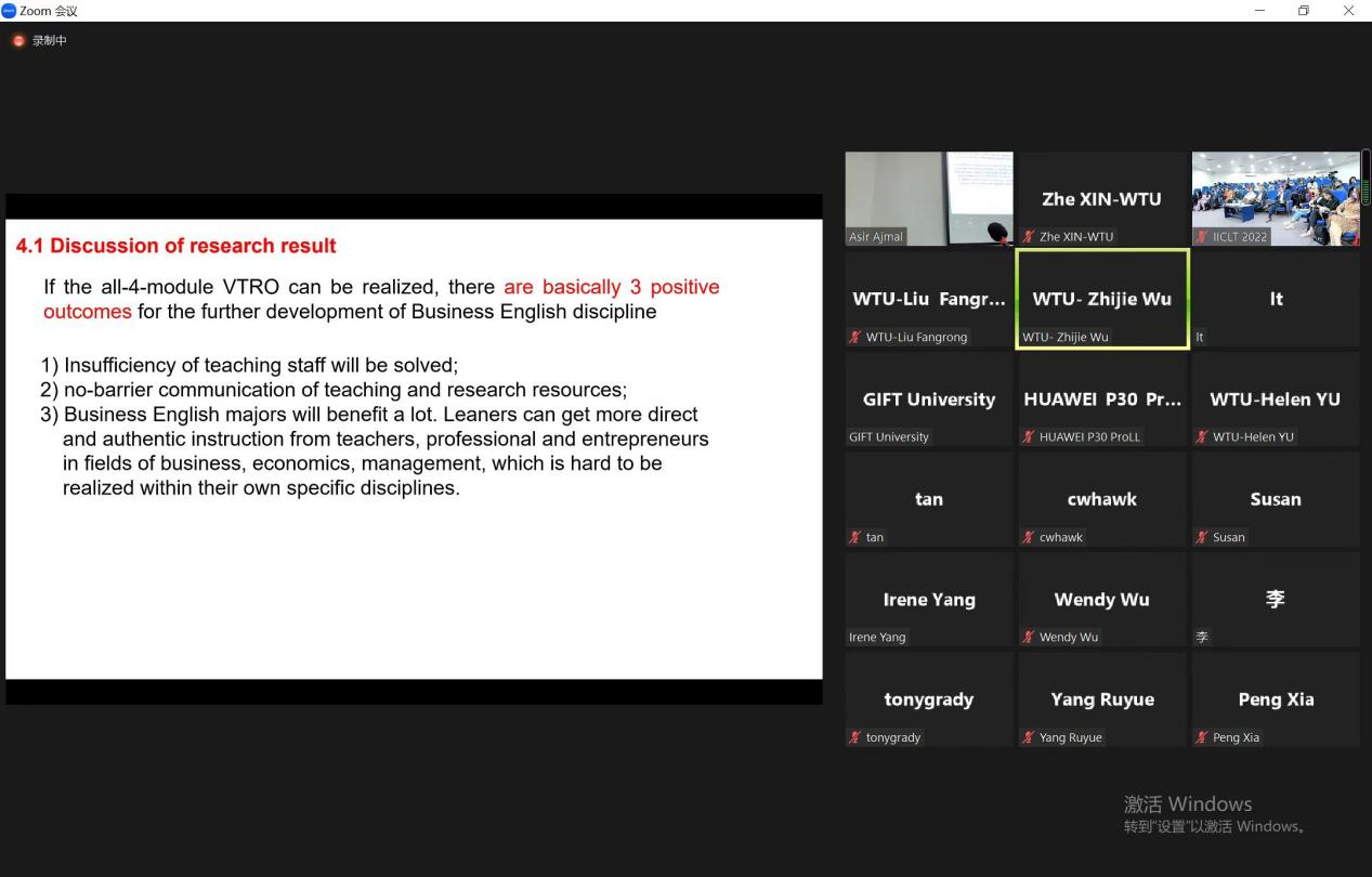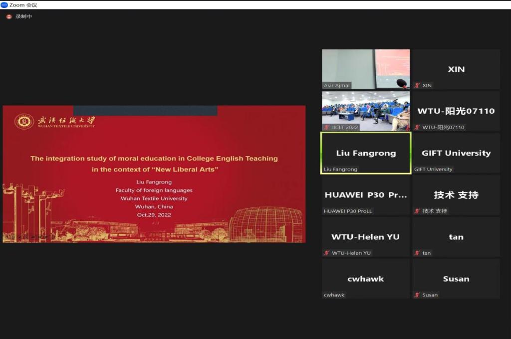 承办的2022国际语言教学跨学科会议(IICLT2022)在线召开。来自巴基斯坦GIFT大学、英国卡迪夫大学、考文垂大学和成人文学