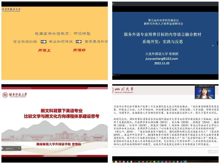 联合主办的第五届外语学科发展论坛暨新时代外语人才培养全国研讨会如期在线召开,来自华中科技大学、四川大学、华东师范大学、郑州大学、湖南师范大学、西安外国语大学、大连外国语大学、华中师范大学和成人文学