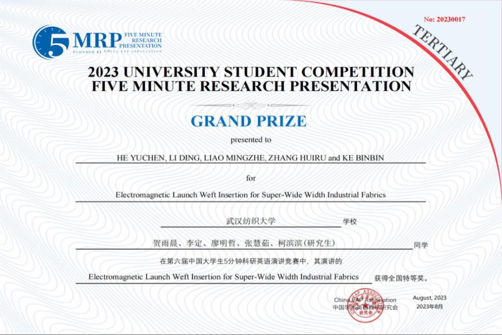 近日,第六届中国大学生五分钟科研演讲(英语)大赛落下帷幕。经过激烈角逐,我校2022级硕士研究生贺雨晨及其团队成员凭借过硬的学术素养,优秀的国际学术英语交流能力、沉稳的现场表现,荣获全国特等奖。