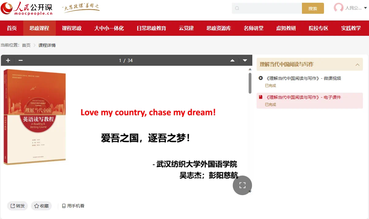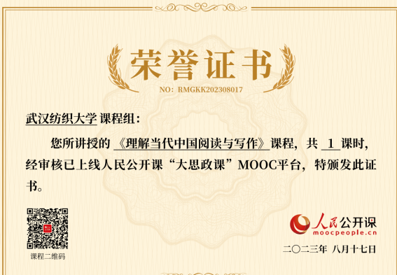 8月17日,成人文学 《理解当代中国阅读与写作》课程团队与马克思主义学院共同研磨的大中小一体化思政课程、课程思政示范课的单个课程视频已成功上线(人民公开课-大思政课MOOC平台 (people.cn)),荣列为“人民公开课大思政示范课”。