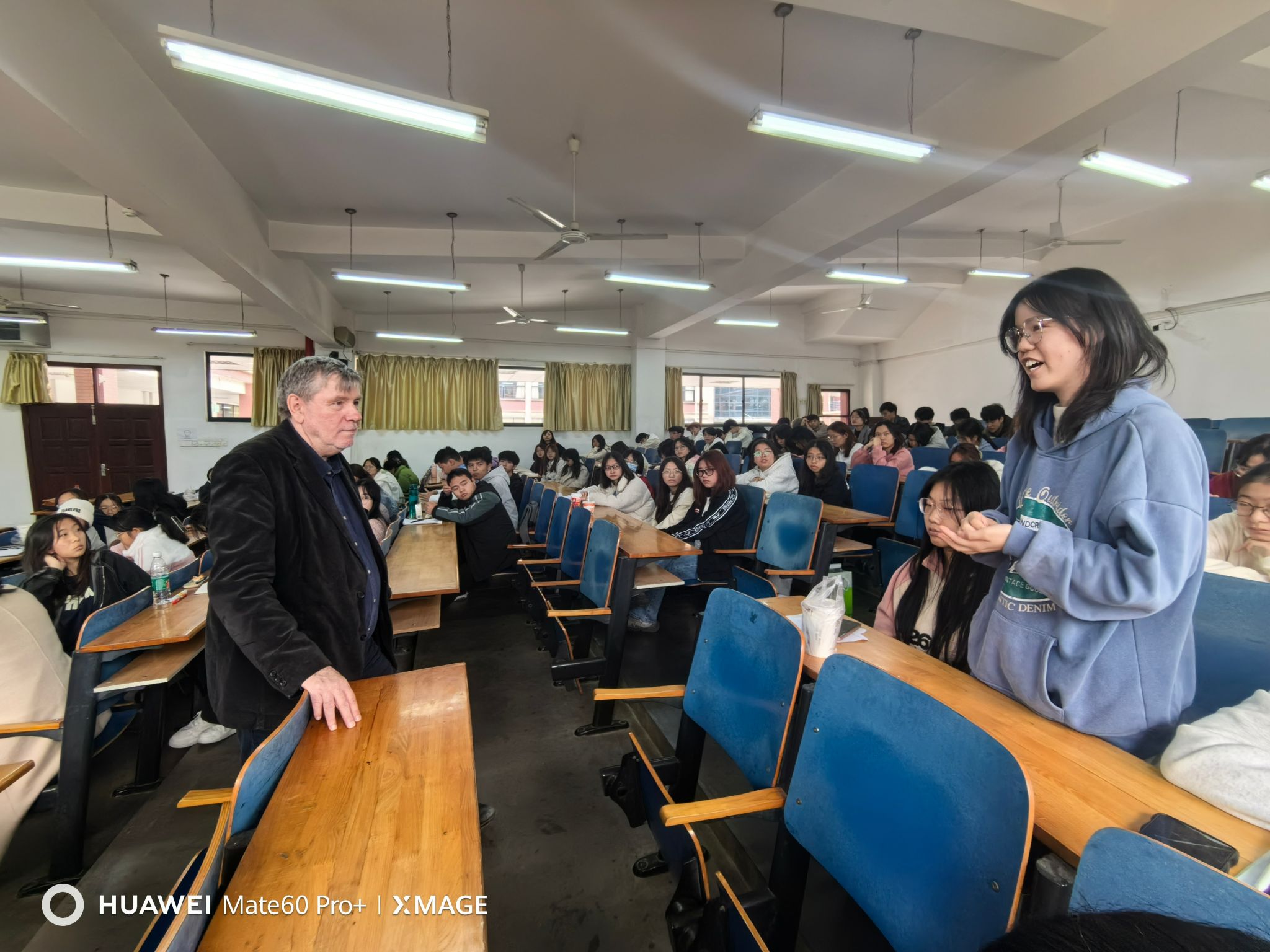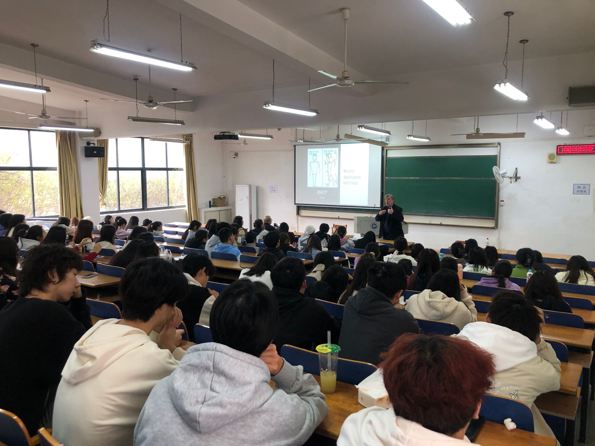 Johnston教授亲切幽默,善用简单的语言和实际例子来讲解复杂的概念。讲座开拓了学生的视野,加深了学生对翻译的理解和重新思考,同学们争相提问,与Johnston教授交流。讲座后,Johnston教授来到成人文学