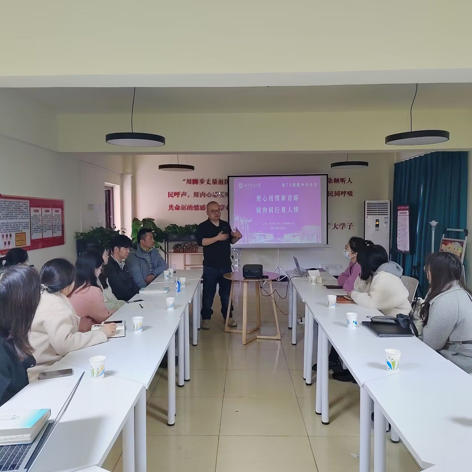 甘新敏老师以《家访---奏响育人”最美和声“》为题,讲述了校领导为学院新生同学送录取通知书的最美遇见家访故事,院领导家访高年级学生的温暖陪伴和共赴一场心灵之约的故事,通过故事分享讲述了家访是温情的行走,有利于以更温暖的方式和学生相处。