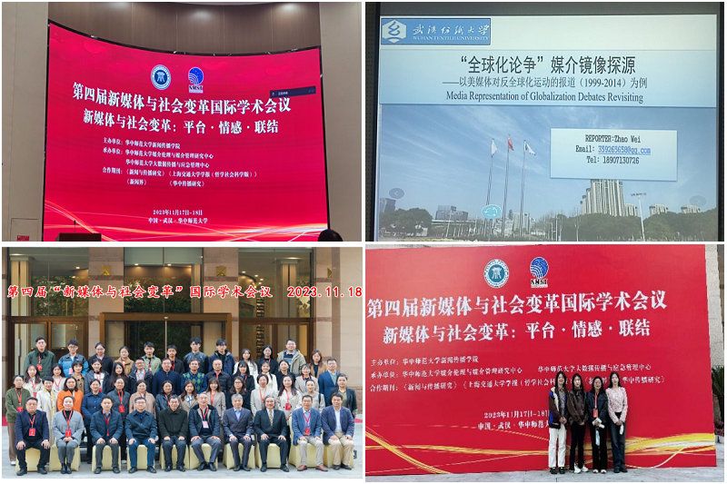 11月18日,由华中师范大学新闻传播学院主办的第四届“新媒体与社会变革”国际学术会议在华中师范大学学术报告厅举行。会议以“聚焦媒体发展前沿,把握社会变革趋势”为宗旨,以“平台·情感·联结”为主题。此次研讨会旨在探讨当前媒介生态中各种关键要素及其相互作用所产生的多种可能性,为新媒介生态下的社会治理贡献学术力量。会议主旨嘉宾有来自中国社科院的胡正荣院长、武汉大学的强月新院长、华中科技大学的张明新院长、中国传媒大学&《现代传播》主编隋岩教授以及来自美国罗德岛大学、英国剑桥大学、美国长岛大学和美国华盛顿大学等地的专家学者。我校成人文学