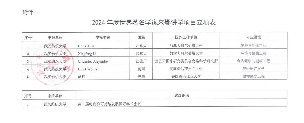 九、首次获批2024年度湖北省教育厅“世界著名科学家来鄂讲学计划”项目1项,教师赴国外知名高校公派访学4人,学院国际交流与合作呈现新亮点。7月,湖北省教育厅办公室印发《省教育厅办公室关于2024年度世界著名科学家来鄂讲学计划项目立项的通知》,美国爱达荷州立大学BRENT WOLTER教授来鄂讲学项目成功获批;陈奇敏、余演、刘珊、刘慧等4人赴英国剑桥大学、美国爱达荷州立大学等国外知名高校公派访学。