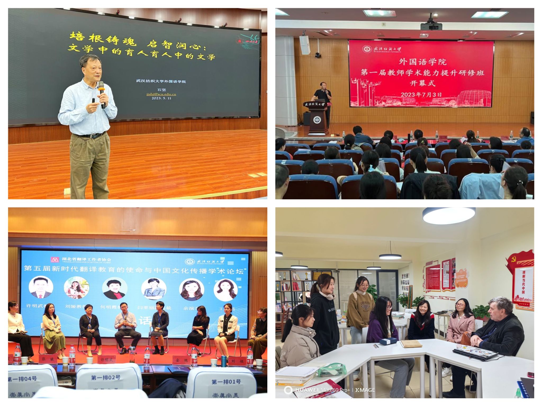 八、连续5年举办第五届新时代翻译教育的使命与中国文化传播学术论坛,首次举办暑期学院第一届教师学术能力提升研修班,邀请国内外专家学者来校举办学术讲座14次,选派教师参加国内外学术交流活动33人次,学院学术生态建设取得新进展。7月,举办学院第一届教师学术能力提升研修班,邀请6名国内知名专家学者授课,提升教师科研能力水平;10月,举办第五届新时代翻译教育的使命与中国文化传播学术论坛,邀请8名国内知名专家学者到会指导,深化对新时代翻译教育使命的认识,强化相关学科前沿问题的研究;全年邀请欧洲科学院院士、英国贝尔法斯特女王大学David Johnston教授和教育部高等学校英语专业教指委委员、全国翻译专业学位研究生教指委委员等专家学者举办“崇文讲堂”学术讲座14次;教师应邀参加湖北省高校“理解当代中国”外语教学工作研讨会等国内外学术交流活动33人次。