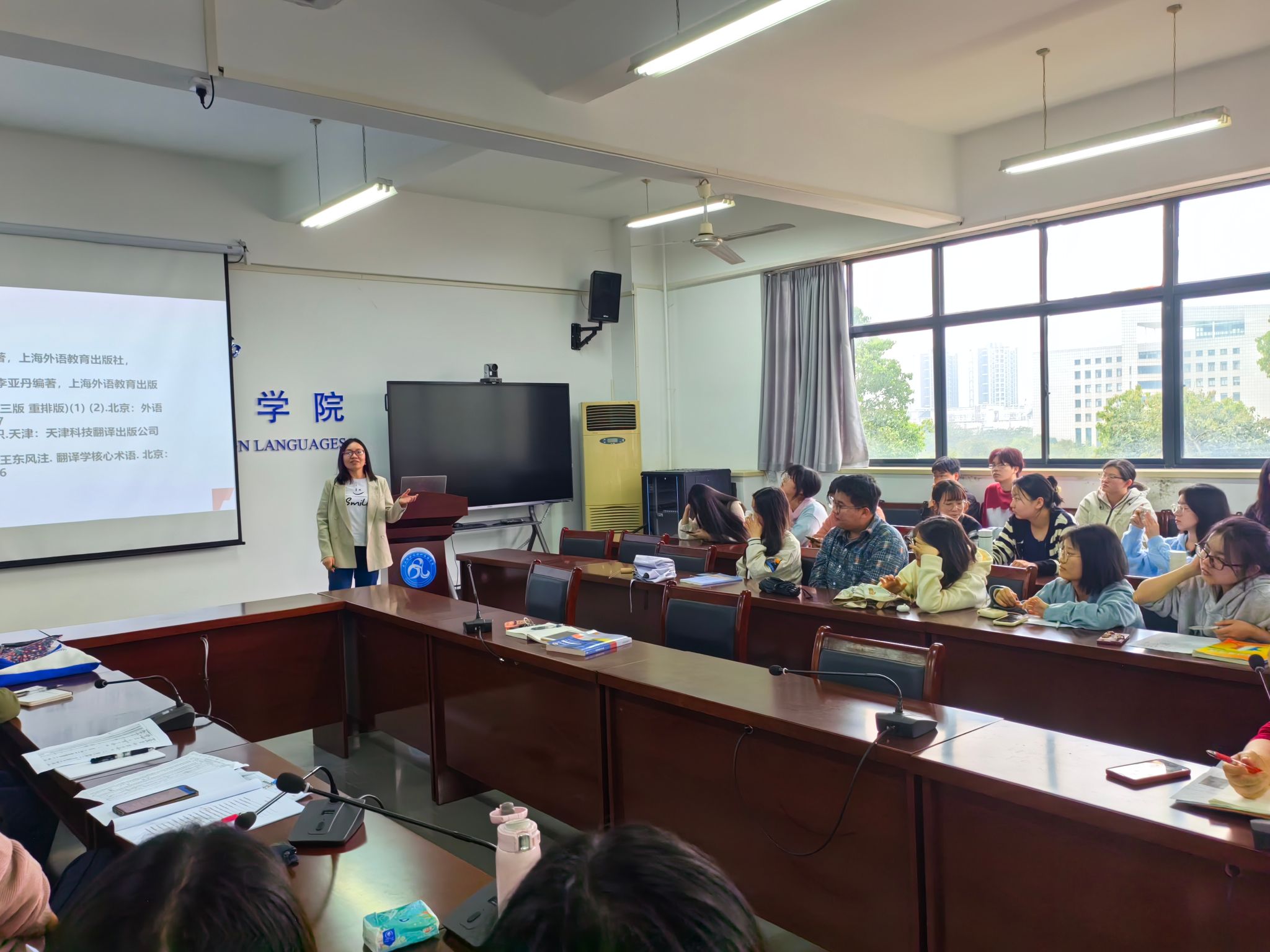 紧接着,副院长刘方荣介绍了学院MTI硕士点建设情况,让同学们更加详细地了解了MTI的课程设置、实习实践情况以及近两年的就业情况,并鼓励同学们积极报考。