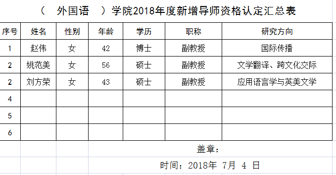 根据校研究生处《2018年度新增导师资格认定通知》要求,结合《成人文学 新增硕士研究生导师资格认定办法》,学院将申报的3位老师的相关材料交由教授委员会各专家进行网评后排序,并对排序结果进行统计,现将最终计票的排序名单公布如下: