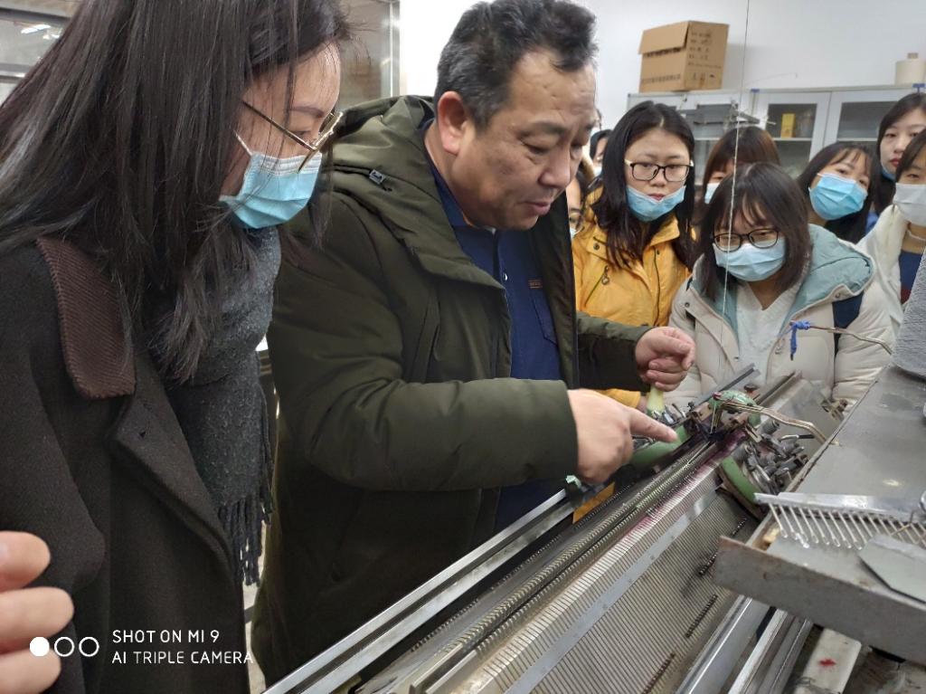 依托学校优势学科及实习基地,为教学实践环节提供足够支持,任课教师郑亚娟组织英语专业学生和MTI研究生,在我校阳光校区实训北楼参观了纺织实验室的纺纱、机织、针织和非织造设备,实验室安排了四位老师分别讲解和演示了纺纱、机织、针织和非织造的基本原理,并对现在抗疫必需品医用口罩当场拆剪,详细介绍口罩中熔喷布的吸附、阻隔作用,展示了非织造布的整过生产流程。学生表现出极大的好奇心和兴趣,有学生在织样机上亲手进行了穿经引纬,尝试手工织布;还有学生在针织横机上织出了一条小围巾。通过此次参观学习,学生熟悉了纺织设备及其工艺,加深了对课本上理论知识的理解。