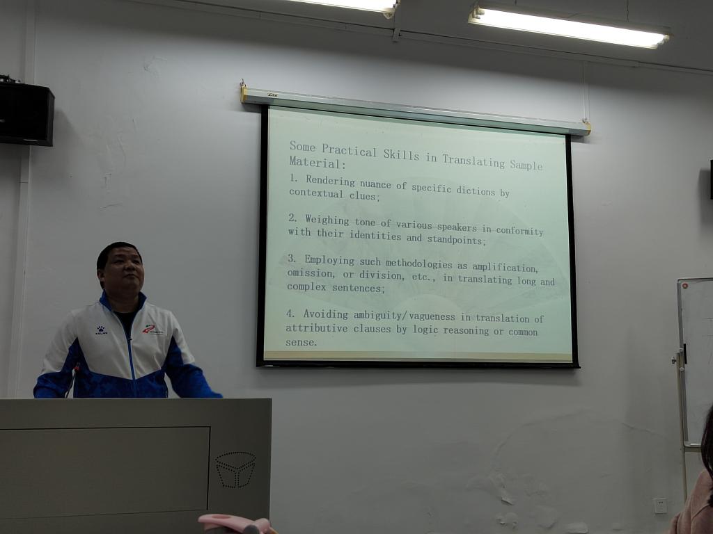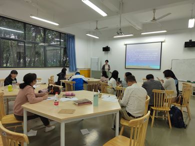 院长谭燕保教授、副院长柯群胜教授、周丹教授、陈奇敏副教授、郑亚娟副教授、黎健副教授、刘方荣副教授、陆雪芹副教授、华敏副教授、曹婷老师等MTI教育中心导师和任课教师参加了此次研讨会。示范课的主讲人为MTI教育中心《中西翻译简史》和《笔译工作坊》课程的主讲老师钱茂华老师和王辞老师。
