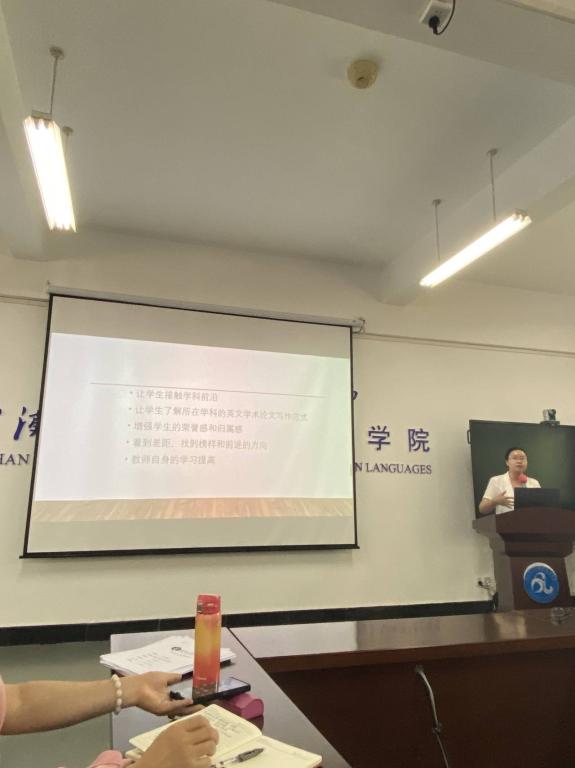 、服务学生、服务专业、服务学校和服务国家五个方面发表了自己的观点和见解。张老师认为,可以根据不同专业的学生制定不同的服务目标,利用本校相关专业本校教师的SCI论文,让学生尽早接触学科前沿,了解所在学科的英文学术论文写作范式,增强学生的荣誉感和归属感。张老师也提出可以在课堂内容中加入相关专业的英文阅读材料,以提高学生的专业英语能力,为学生的高年级学习和未来研究生阶段的学习打下一定基础,提高成人文学