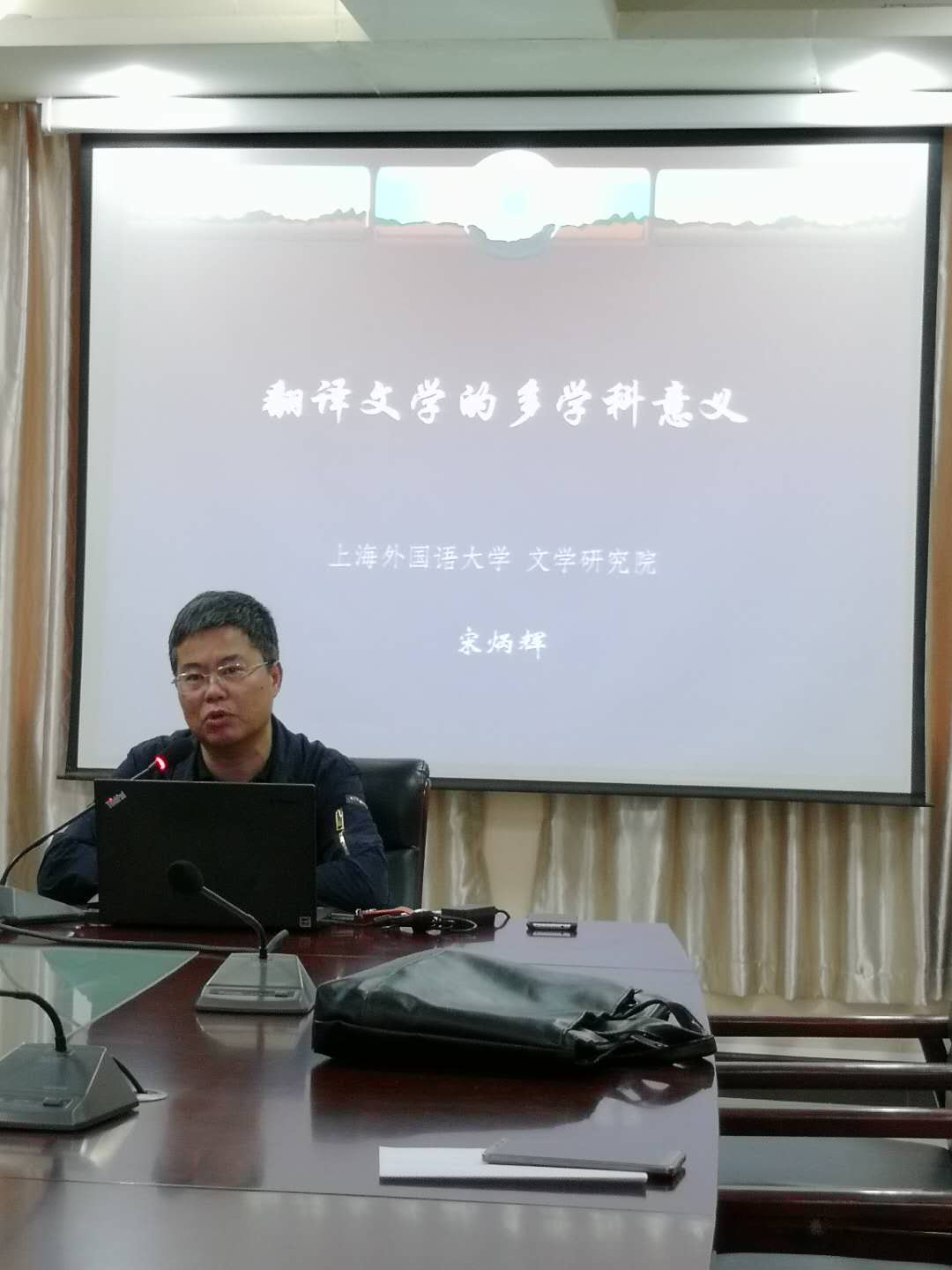 邀请,上海外国语大学博士生导师宋炳辉教授来我院做了题为“翻译文学的多学科意义”的学术前沿讲座。此次讲座由谭燕保院长主持,我院汤富华教授,曹火群博士等60多名教师参加了讲座。