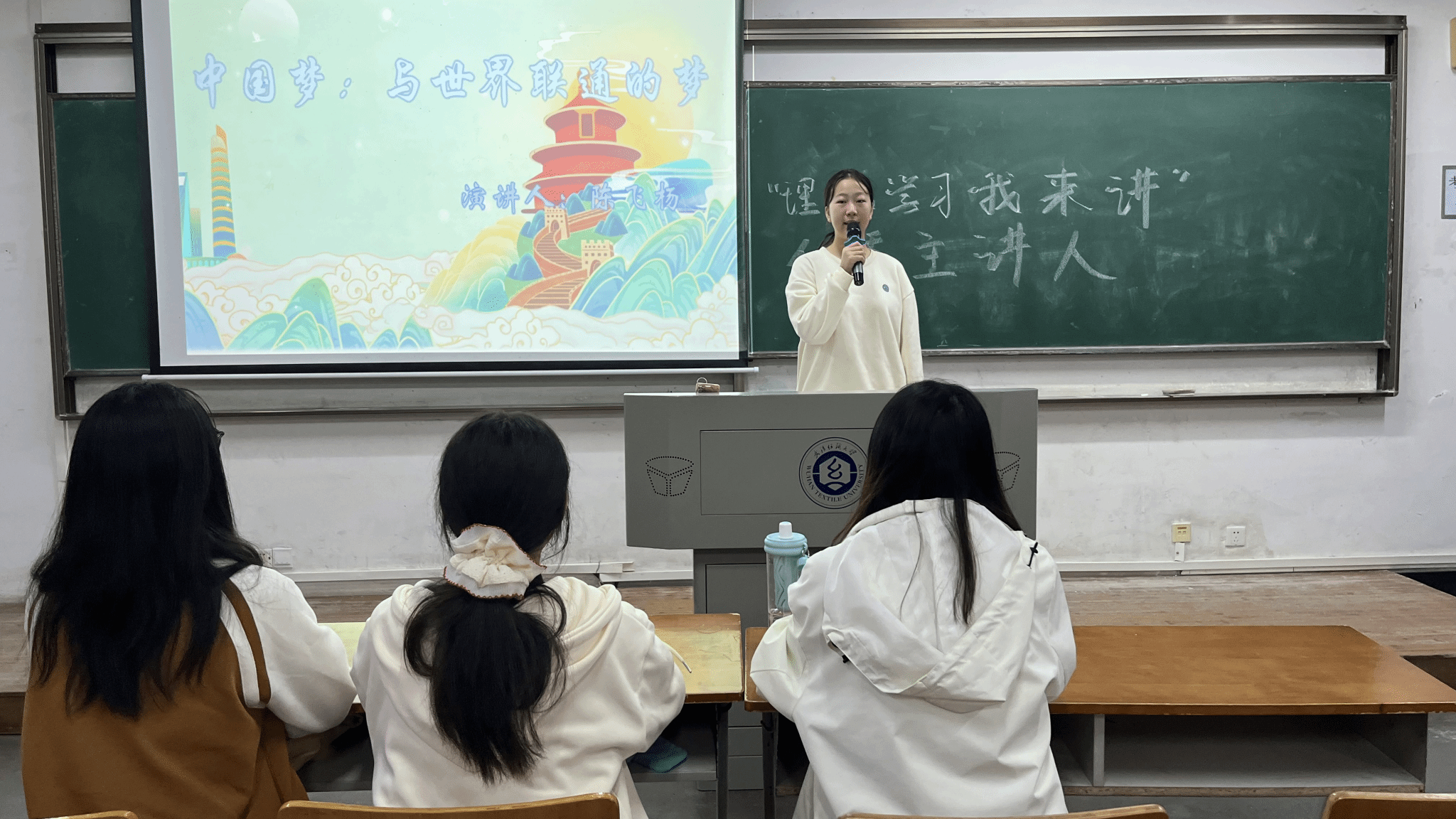 商英12302班的陈飞杨同学以“中国梦:与世界联通的梦”为主题,深刻解读了习近平总书记关于“中国梦”的阐述。他强调,中国梦不仅是追求幸福的梦,更是奉献世界的梦。陈飞杨鼓励同学们接过先辈们的接力棒,继续为实现中国梦而努力奋斗,让世界看到一个更加开放、包容、自信的中国。