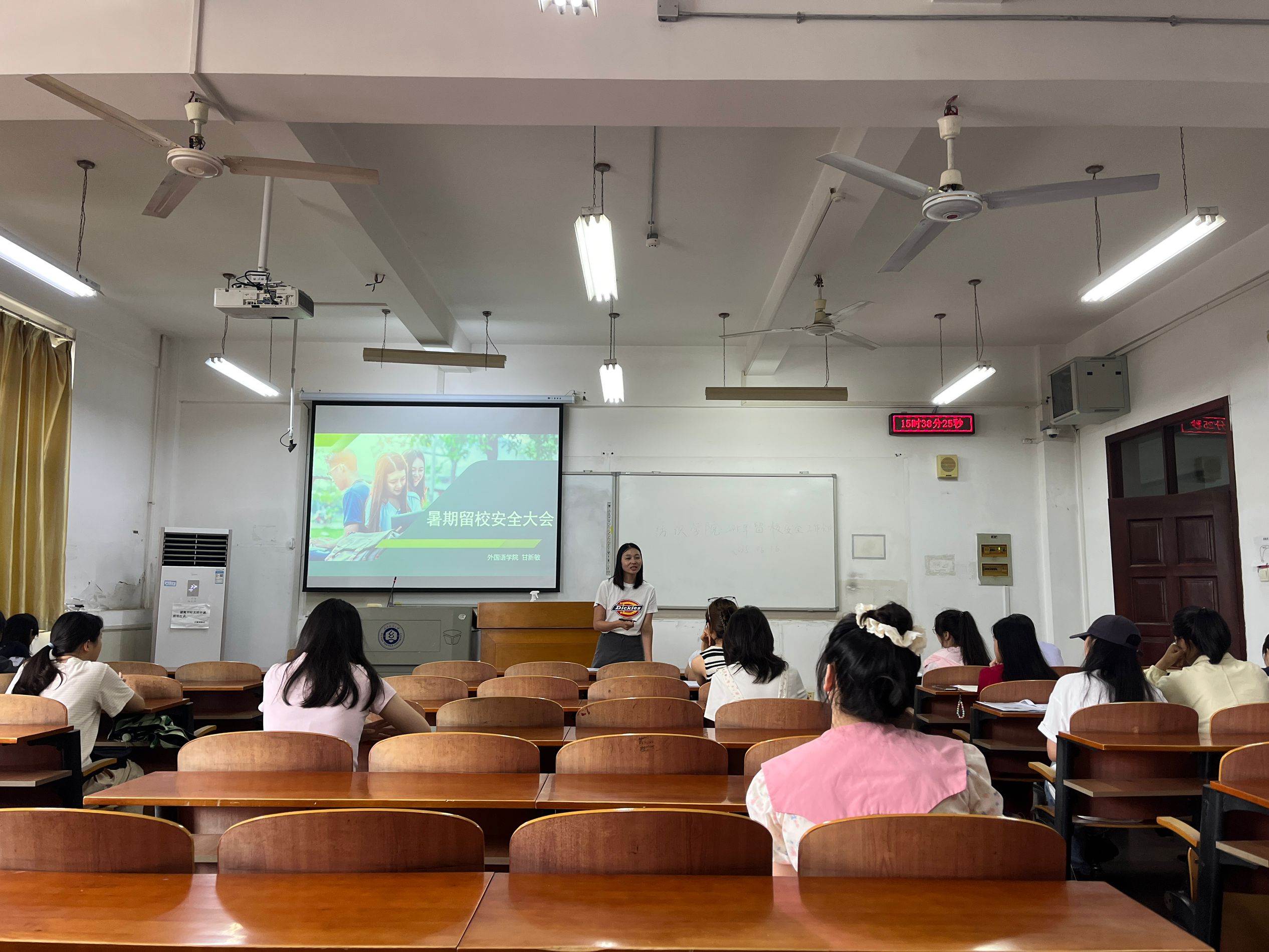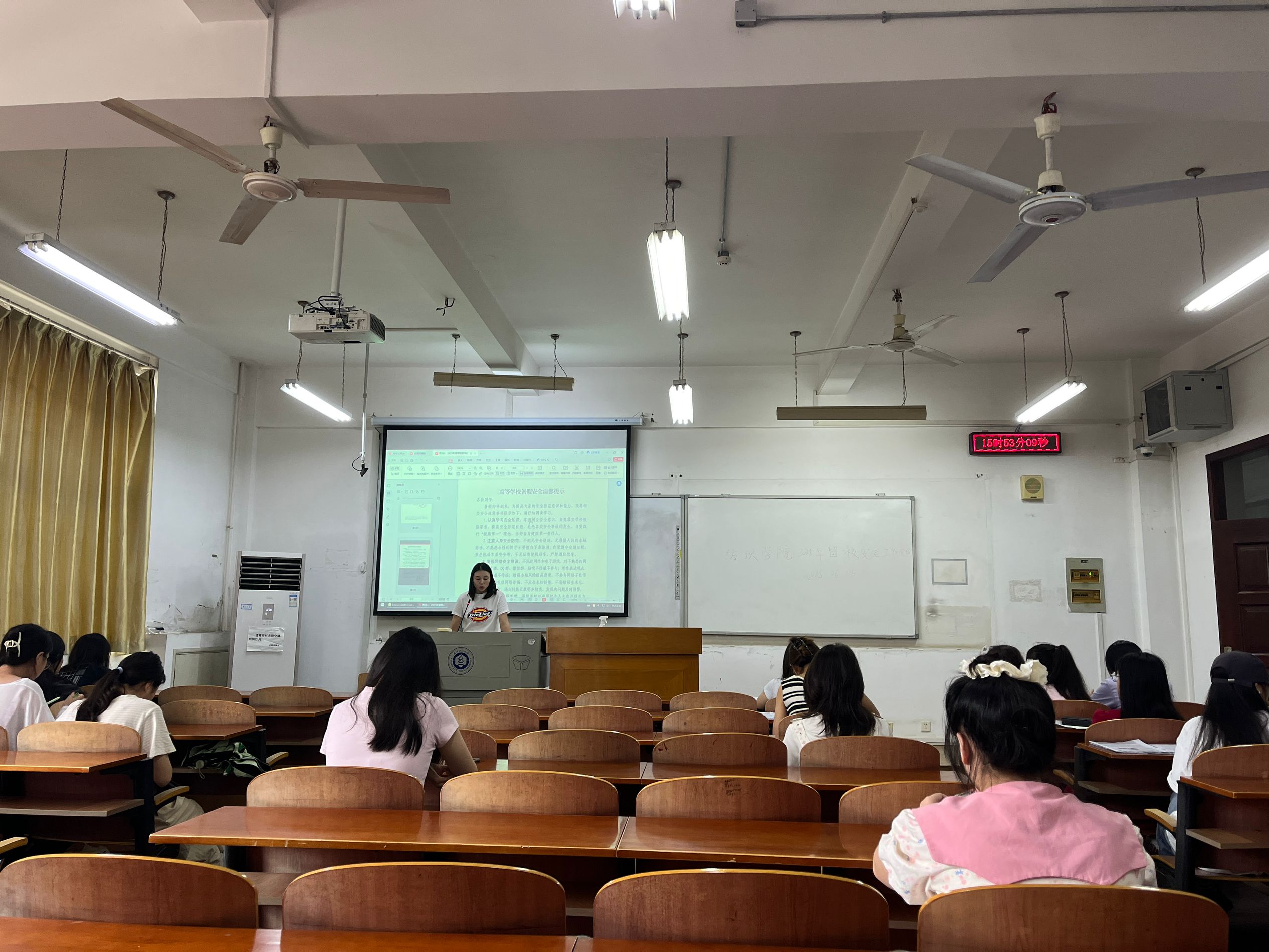 在崇文楼101教教室召开暑期留校考研、实习安全教育大会。辅导员 甘新敏及全体留校考研、实习学生参加了此次会议。