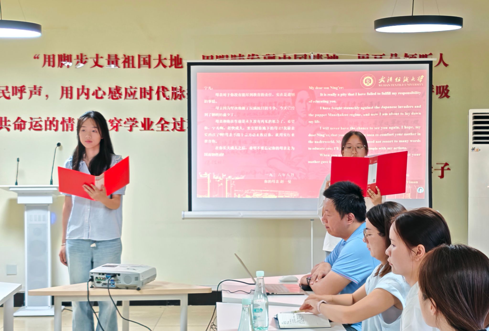 以双语诵读为桥梁,实现红色经典的时代转译与跨文化共鸣。学生代表双语诵读抗战家书《赵一曼致子书》。双语诵读红色经典是成人文学 师生党支部的特色活动,既彰显了外语学科的专业素养,更让跨国界、跨时代的精神对话成为可能。