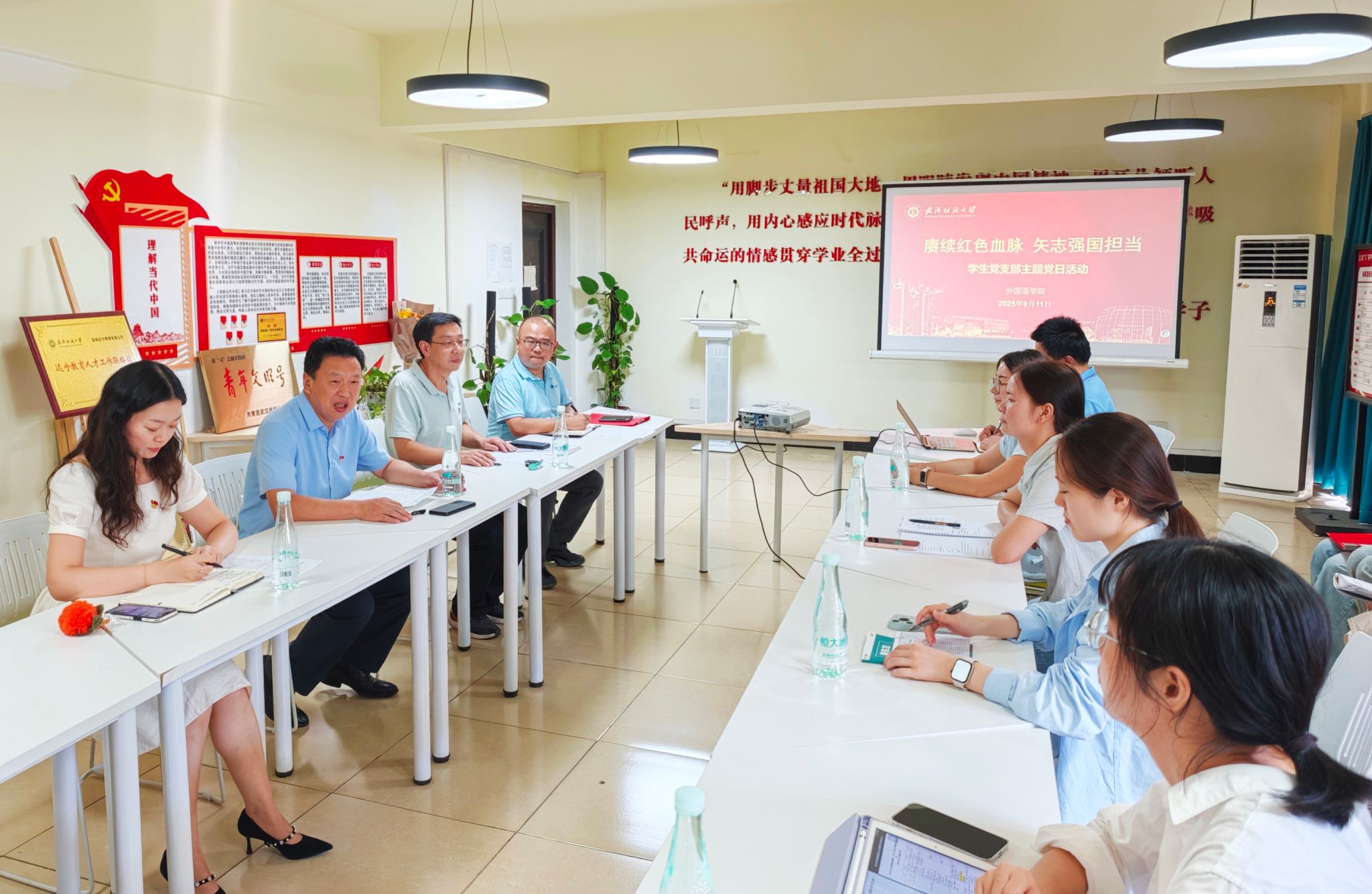 程碧海在活动点评环节以“三种力量”为主线——即党的力量、科技力量与精神力量,对学院党建工作和育人实践提出三点明确要求:一要持续强化党的领导,把准政治方向,夯实基层组织战斗堡垒作用;二要注重创新驱动与人才培养,主动对接国家战略需求,突出外语学科优势,培养具有家国情怀和国际视野的高素质复合型人才;三要大力弘扬抗战精,凝聚奋进力量,践行“韧、忍、仁”三字箴言,增强理想信念教育实效。
